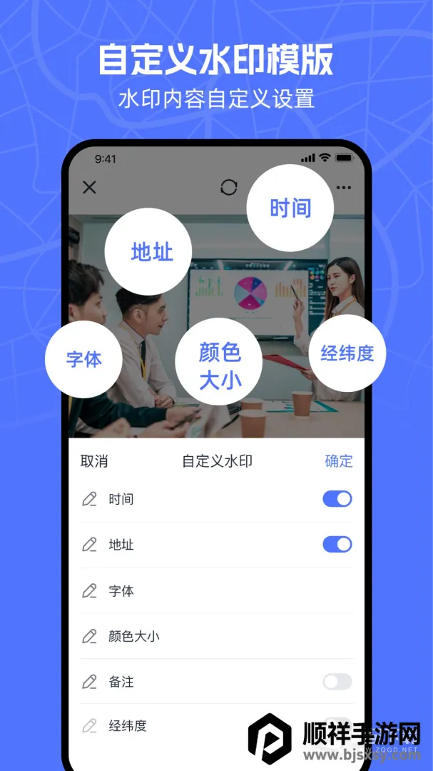 3. 多场景适用:适于项目巡检、勘察取证、防控消杀、执勤执法、考勤打卡、外勤拍照、工程管理、微商电商等多场景工作拍照打卡记录,还持续推出创意水印,支持旅游、探店、健身等打卡。