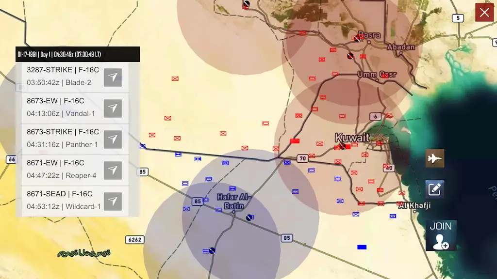 3. 动态战区真实感:设定在动态变化战场,与空中、地面和海上单位实时交战。地对空导弹系统和雷达站使战斗场景复杂多变,AI飞机任务逻辑、昼夜循环及天气变化增加真实感与挑战。