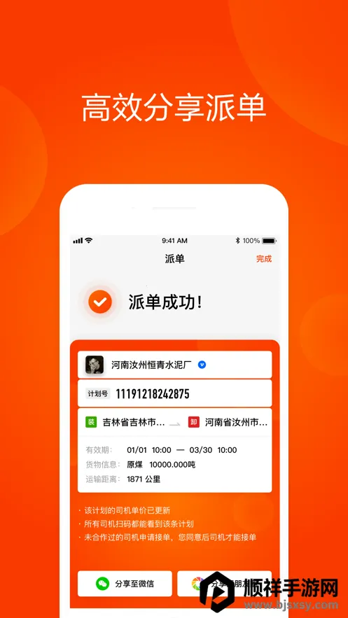 多种派单场景:指定司机和分享货源二维码等,满足多种业务场景需要,适应不同运输需求。