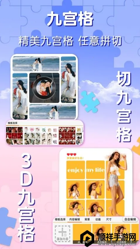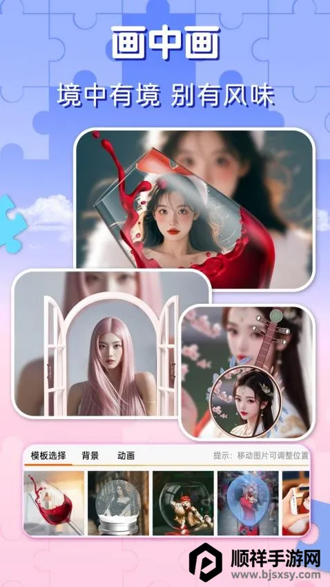 1. 海量模板:拥有海量创意拼图模板,涵盖多种形式与比例形状,满足多样场景需求,可自由拼接突破限制。