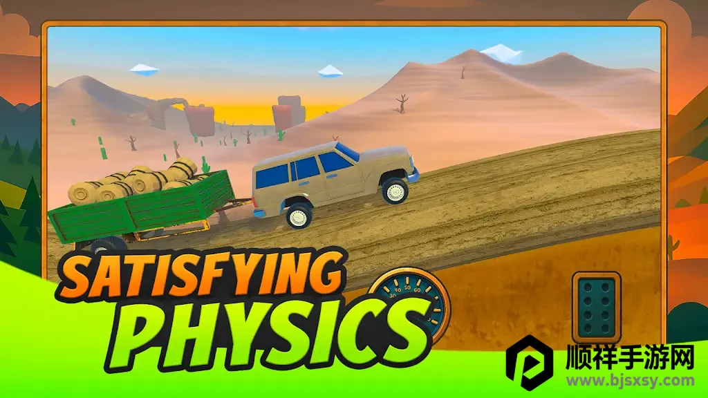 4. 出色物理引擎:每一个颠簸和坡度都影响驾驶体验,操作简单灵敏,视觉效果是简洁多彩的低多边形风格,带来独特享受。