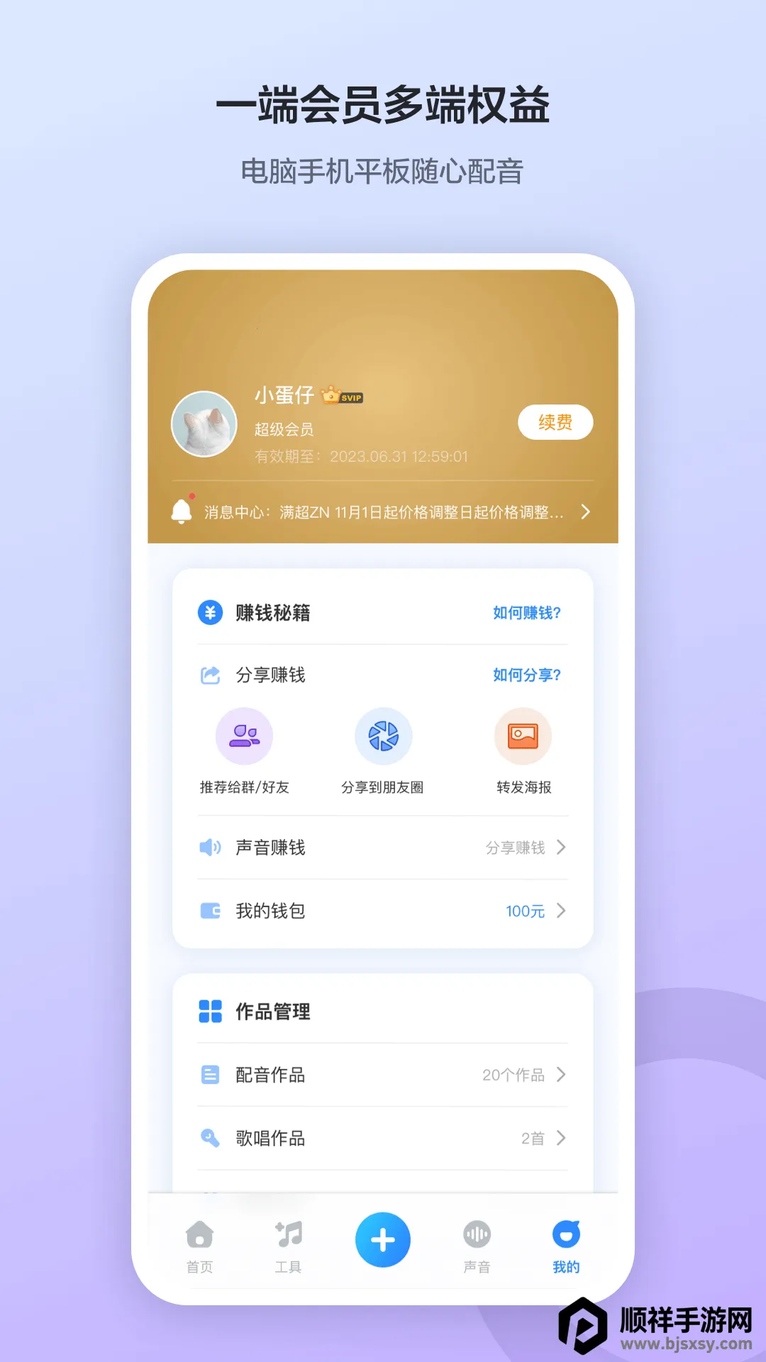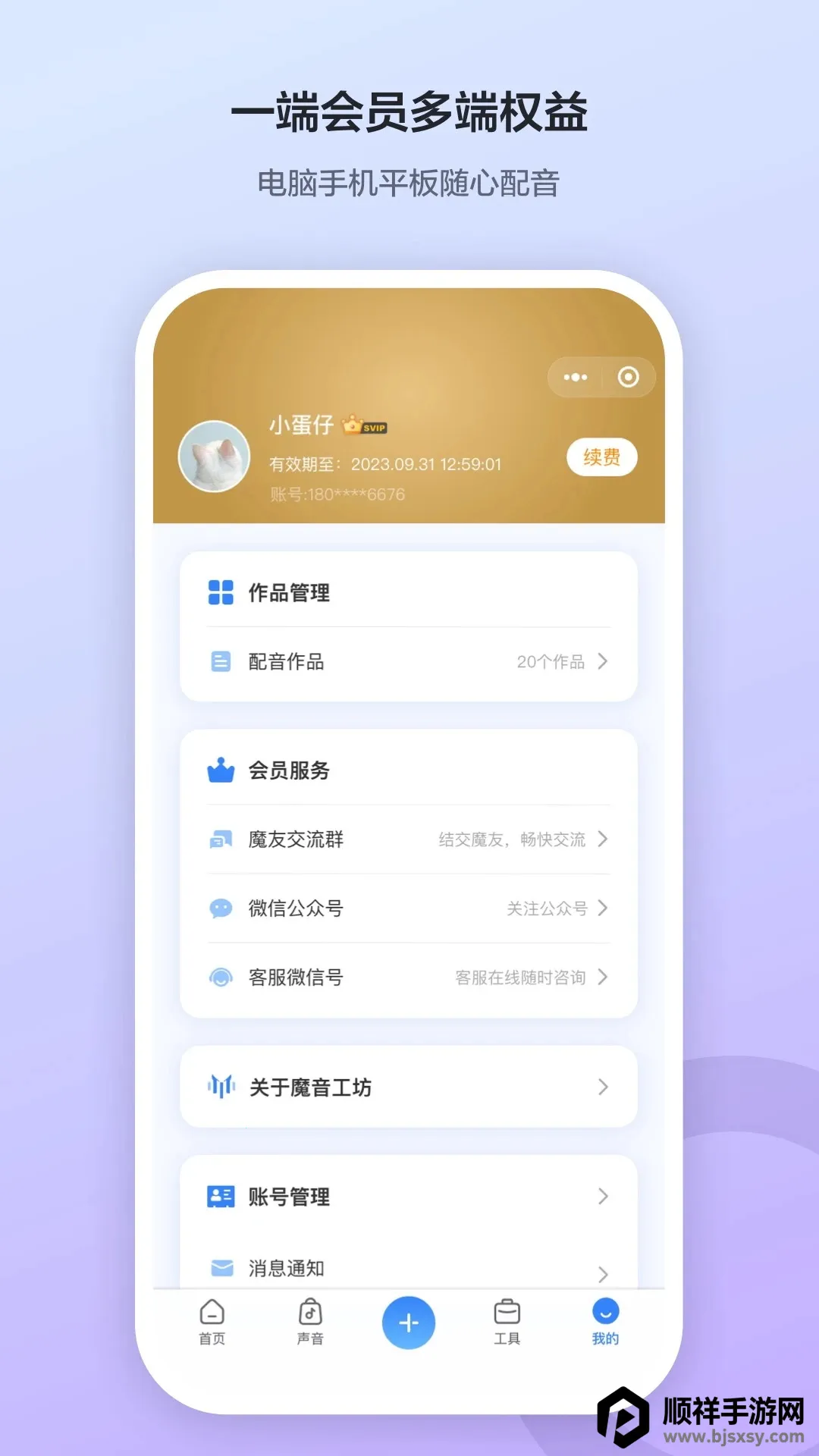 3、多端通用与超值会员特权:魔音会员可在电脑、手机App、微信小程序三端通用,尊享不限次数下载音频、下载配音对应字幕srt文件、文案提取等福利,还送多款会员声音,每天可生成一定次数且单次字数有限制,声音格式多样还可生成同步字幕。