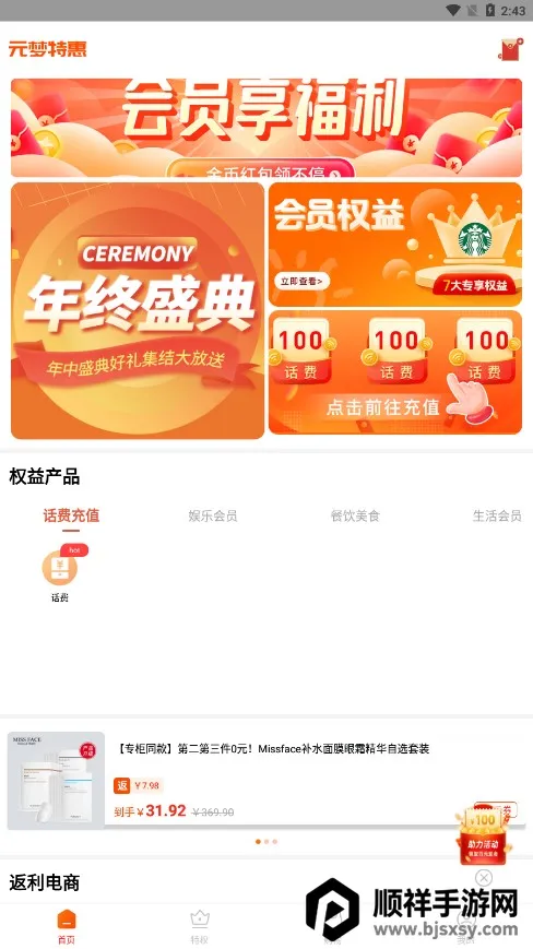 元梦特惠充值能满足你对超值购物的需求。它提供了超棒的在线购物体验,还会推送畅销产品。在这里购物,你的不满会得到补偿,能放心选购优质商品。其功能十分强大,专业的购物功能带来全新体验,海量福利券让你随时享受打折购物,购物过程轻松又便捷,能轻松买到各类低价好物。通过与它合作,你可随时体验实用功能,获得大量折扣。软件里全网优惠产品众多,服务出色,每周都有新产品。它为消费者推荐随时可见的高性价比好货,产品选择丰富。无论是日常用品还是心仪已久的商品,都能在这里以实惠的价格买到,让你自由畅享购物的乐趣,轻松实现购物需求,尽情享受购物带来的便利与满足。