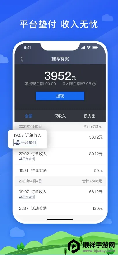 4. 数据超清晰:实时统计接单数据,收入财务信息一目了然,余额可随时提现。