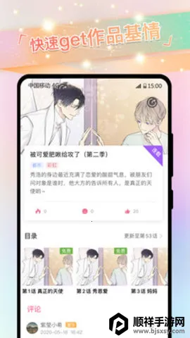 免耽漫画是专注耽美漫画阅读的神器,涵盖国漫等多种类型。能收藏漫画并保留阅读进度,更新快且正版。有丰富功能与特色专题,界面无广告,资源全彩高清,可自由搜索、切换模式,还能互动分享。