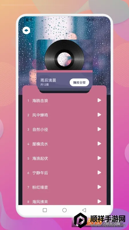 4. 丰富资源:提供丰富多样的高品质白噪音及自然音效资源,涵盖雨声、海浪、森林、篝火、风声、咖啡馆环境等数十种场景音,满足多元需求。