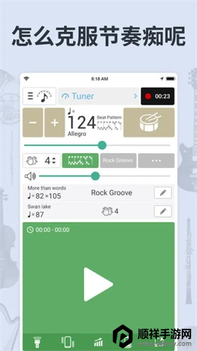 3、独特节拍体验:闪光灯节拍器模式结合BPM同步手机振动,打造真实节拍环境,且节拍练习会变难。