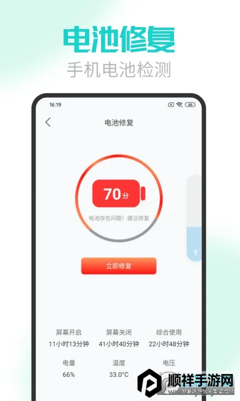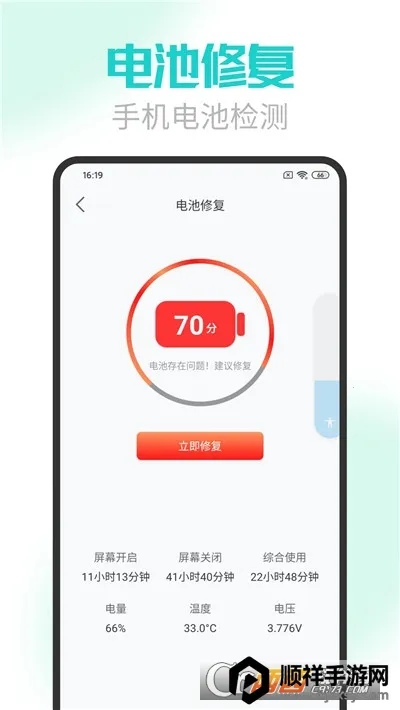 电池医生极速版2026官方正版是一款手机电池监控优化软件,能检测电池健康、修复电池问题,显示电量、温度等信息,可一键省电、优化功耗,自定义省电模式,还能延长电池寿命,保障使用安全。