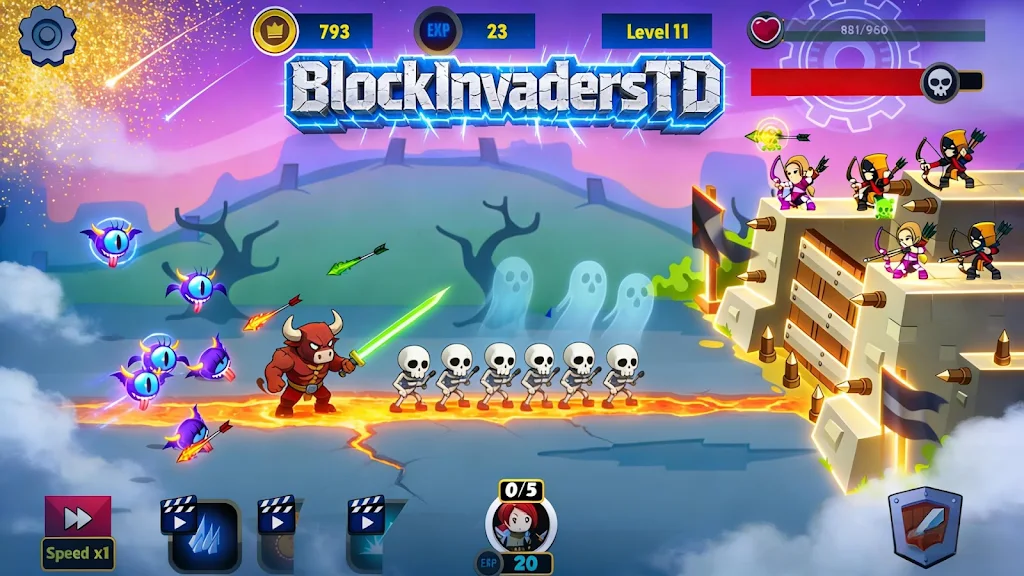 想找守卫城墙的游戏?那就是它啦!这是一款超刺激的塔防游戏。在游戏里,你要肩负保护家园的重任。你得用智慧合理配置弓箭手,抵御一波又一波入侵者。这里敌人种类多样,从敏捷的小型生物到强悍的巨兽,各有独特攻击方式和弱点,你得仔细观察并制定防御方案。而且能对弓箭手升级进化,提升攻击力、加快射击速度、解锁强大技能。操作简单易懂,不管是老手还是新手都能迅速上手。每关都有不同敌人组合和地形布局,挑战自我创造出色战绩。现在还有全新MOD版本,有去广告功能,无需安装一键秒玩,还有变速功能可自由调整游戏节奏,让你尽情享受策略与战斗的乐趣,快来开启保卫家园的冒险之旅吧!