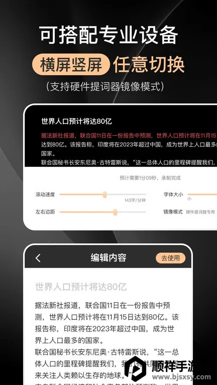 提客提词器完全免费!它能帮你解决录制视频或直播时忘词的大难题。把台词本内容导入 app,就能自动生成提词模板。真人录制视频时,能让你更自然地朗读台词,再也不用担心忘词尴尬啦。开启滚动字幕,能大大提升录制视频的效率,轻松制作出完美的 vlog。这软件功能超强大,不仅适用于短视频创作,参加演讲活动也能用。而且它很专业,能给你各种口播视频小技巧。不占太多内存,兼容性高,还能下载到电子大屏幕。操作简单,在首页点击新建台词就能创建,编辑、设置滚动速度、字体大小等都很方便。有了它,随时随地都能高效完成录制,再也不用为背词烦恼,真的太实用啦!