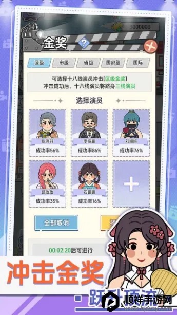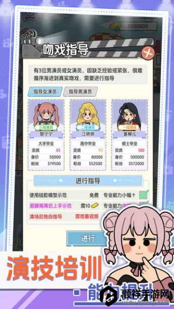 2. 演员个性养成:每位演员性格天赋各异,通过多维度培训提升能力,维护好感度,防止罢演或被挖角。