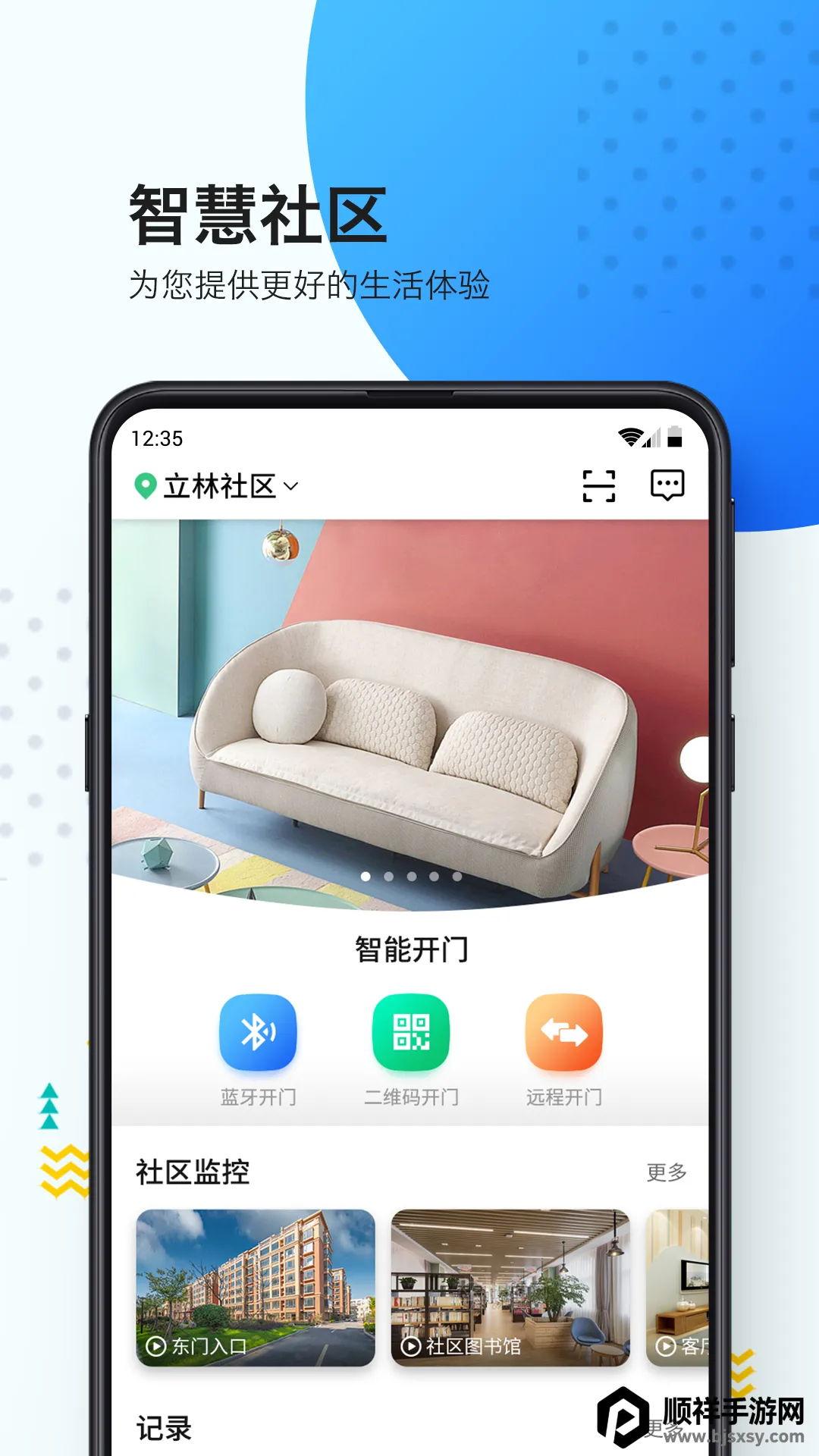2. 家居智能管理:支持家居智能门锁连接,即便不在家,在手机上也能实现门禁对讲、视频监控、成员管理等功能。各种社区家居产品丰富,用户可自主选择,在外办公时通过监控能实时了解家中情况,高科技管理账号,手机上直接管理各类应用。