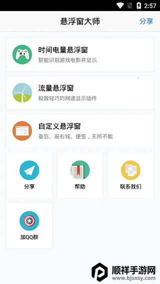 悬浮窗大师是一款超实用的安卓手机悬浮窗软件。它功能强大,能解决不少问题。集成了时间、电量、流量悬浮窗和自定义悬浮窗。时间和电量悬浮窗有智能识别全屏功能,玩游戏看视频时自动打开,不用退回桌面查看。流量悬浮窗可实时查看网速。还提供计算器、日历等多种实用工具,能管理应用程序,快速访问短信、电话等应用。