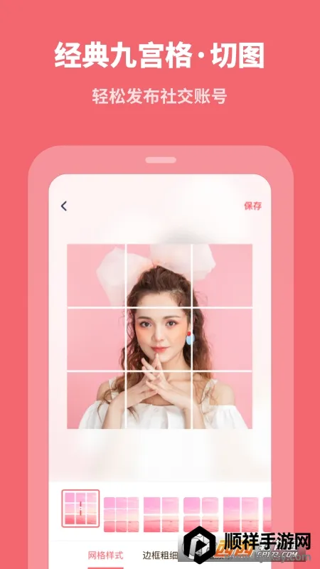 3. 样式多样:提供多种网格样式供自主选择,可快速剪切图片,还有九宫格切图、台词拼图等特色功能,满足不同需求。