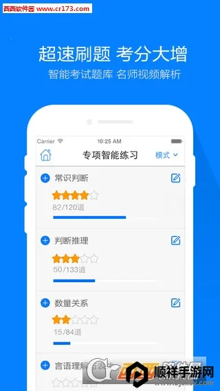 公务员万题库是款超棒的考公学习平台。它整合大量考试资源,还有专业教学团队。能随时和老师互动,老师能了解学生情况,还能查看其他用户与老师互动及老师回复。试题资源超丰富,有章节练习、真题模考等。每道题都有详细名师视频解析,助你轻松掌握知识。涵盖所有职业考试题库,海量题目随意练。采用大数据持续收集更新高频必考题和错题,丰富题库内容。练习形式递进,巩固知识。提供视频直播课,随时能看。面试用PPT教学,呈现重点。还覆盖考试大纲全部考点,有大量历年真题和优质视频资源。能离线下载课程,错题自动备案,随时收藏笔记。有智能辅导、练习、评估等功能,免费直播课超给力。有了它,考公不愁,轻松提升成绩,顺利通过考试。