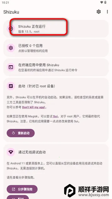 4、下载并安装Shizuku软件后,启动该服务;