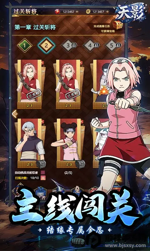 《天影奇缘》是一款超刺激的竖版游戏,高度还原火影忍者!苦无划破长空,螺旋丸与千鸟碰撞,通灵兽咆哮,尾兽之力觉醒,战斗盛宴燃爆!它可不是简单的卡牌对决,而是查克拉与体术的生死较量。这里有全场充值0.1折的超值折扣,登录就送神器金箍棒和金将忍者,等级福利狂送400抽,主线闯关能结缘专属金忍,忍者收集可集结专属火影小队,超值首充还有九尾之子降临。无论你是火影迷还是喜欢刺激战斗游戏的玩家,它都能满足你。让你在游戏里体验忍者的热血忍道,感受超越动画的精彩战斗,以忍之名,战至终章!在这个游戏世界里,你能尽情享受火影带来的激情,轻松解决你对热血战斗游戏的需求,畅享游戏的便利性与乐趣。