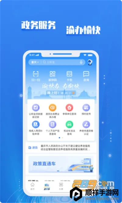 渝快办是一款专为重庆人打造的网上办事大厅服务中心。它拥有简洁界面,操作简便,解决了办事时间不确定、流程不清楚等问题,极大方便了生活。其功能丰富,涵盖社会保障、户籍管理、公积金查询等综合政务事项办理入口。首页重点打造多个每日10条最新资讯及特色功能模块,实现精准推送。通过它办事轻松便捷,能随时掌握进度,免去来回跑的烦恼,真正让群众尽享掌上政务服务带来的便利,是重庆市民办事的得力助手。
