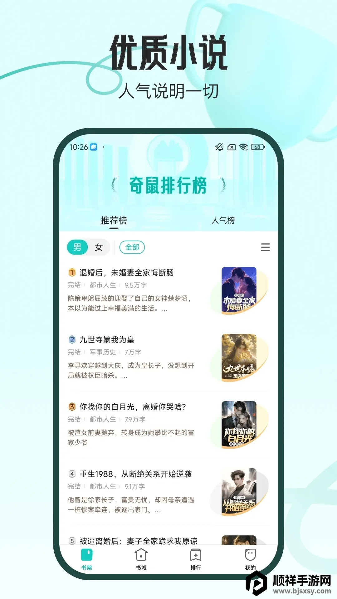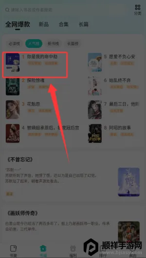2、选择书城中的人气榜进人。