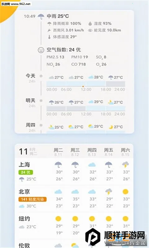 1. 全球天气实时更新,让你随时掌握各地天气动态。无论身处何地,都能第一时间知晓当地的温度、湿度、风力、风向以及空气质量等信息,还能同时关注多个城市,全面了解不同地方的天气状况。