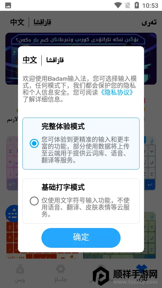哈萨克语输入法安卓版适配哈萨克西里尔文,九键及二十六键均可快速上手。智能联想等助提高打字效率,支持十二种语言输入。多语种切换、单词联想、智能词库等功能丰富,安装包小、操作简、输入全。