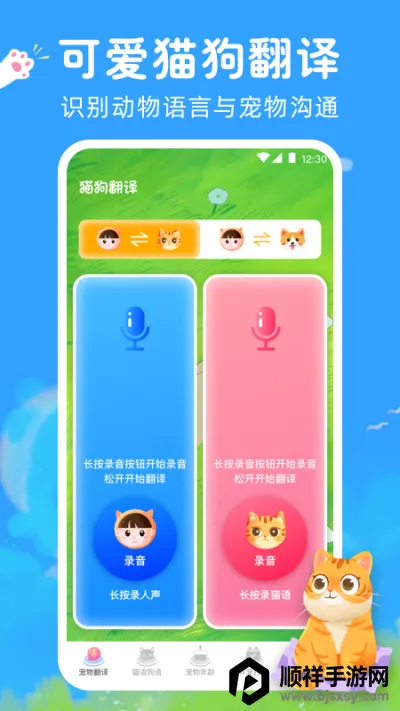 猫咪狗狗翻译器是一款超棒的软件!它能精准捕捉猫狗叫声并转化为人类语言,也能把人类话语转换成宠物能懂的声音,实现双向互动。软件功能超丰富,有语言翻译、人声转换、养宠打卡、宠物年龄计算、宠物百科、实时翻译等。能帮咱们快速了解宠物需求,减少沟通隔阂,记录养宠关键事项,还能深入认识宠物的各种知识。操作简单,长按录音就能用。而且它免费下载安装,所有核心功能都无需付费解锁,使用起来流畅又舒适,没有广告打扰,页面简洁直观。不管你是想知道宠物在表达啥,还是更好地照顾它,这款软件都能满足你,真的太方便啦,强烈推荐给各位铲屎官!