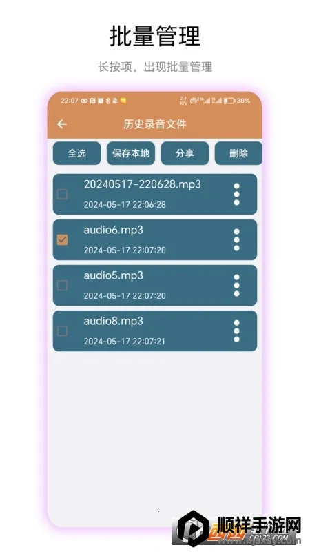 3. 管理方便:有着可视化录音列表,可创建文件夹来分类管理音频文件,实现高效整理,还能对录制的音频随时播放,轻松回顾重要信息或对话内容。