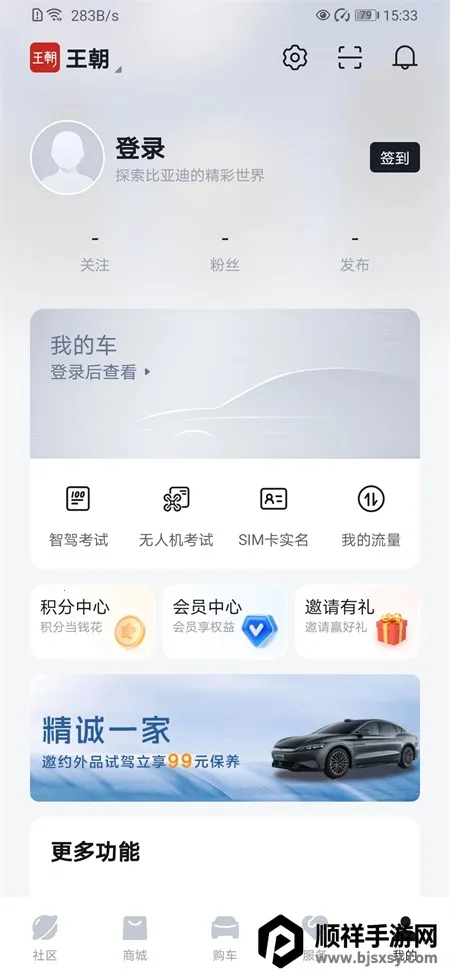 比亚迪App是一款智能用车及智慧出行应用,为用户提供便捷用车体验。它支持全品牌车辆信息查看与远程控制,涵盖无钥匙启动、远程授权、空调座椅控制等功能。数字钥匙让手机变身车钥匙,售后服务预约方便,社区互动丰富用车生活,商城还能购买相关商品配件。积分通用,操作流程简化。通过它,用户可随时随地掌握车辆情况,享受智能便捷的用车感受,如果想体验这些,快来本站下载比亚迪App。