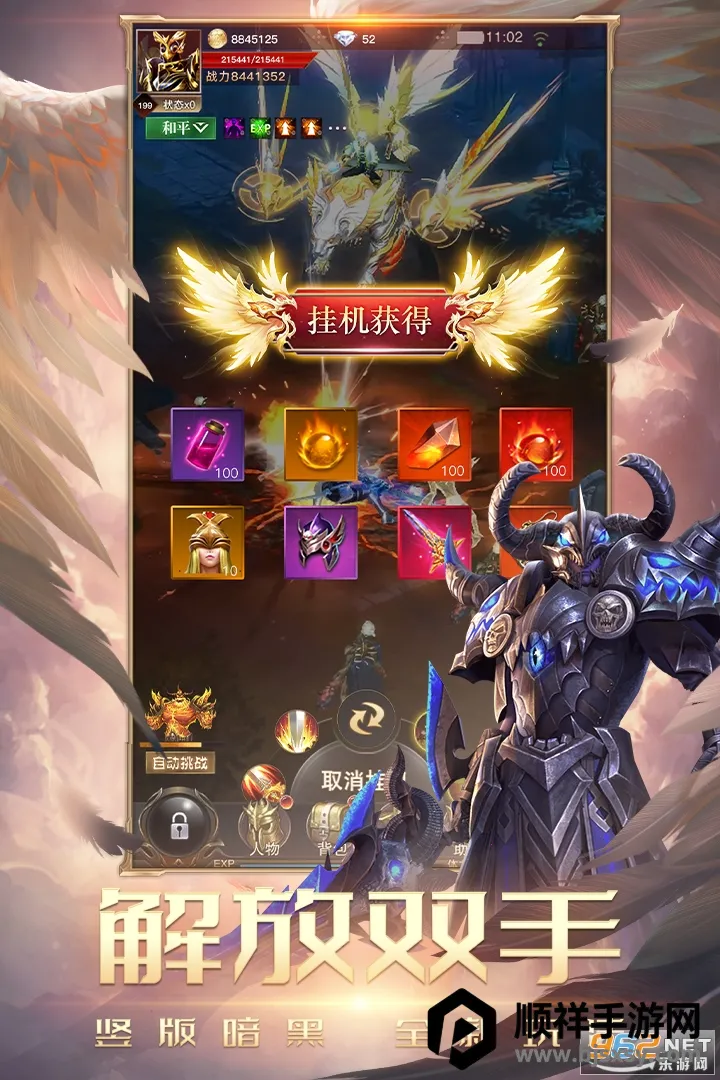 2. 拥有丰富玩法,包括花式冒险、热血PK等。多种副本装备爆率超高,一键挂机轻松护肝;多种PVP玩法搭配炫酷特效,让玩家尽情释放战斗热血。