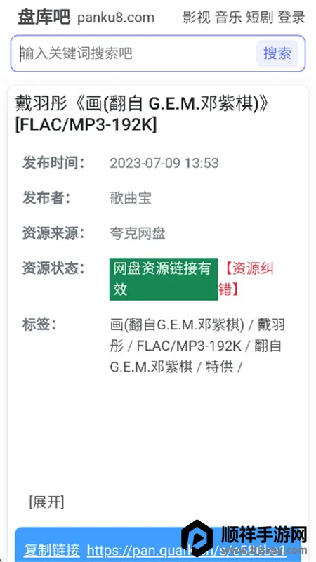 盘库吧是一款超实用的资源搜索工具。它能解决用户找资源的难题,不管是娱乐消遣所需的影视音乐,还是学习工作要用的文档资料,都能一站式满足。其功能强大,界面简洁直观,一打开就能看到搜索框和分类导航,新手也能快速上手。搜索时输入关键词就行,还有最新搜索推荐。它能自动识别无效网盘资源,过滤掉无用链接,让搜索结果都是有效资源,省时省力。而且没有广告干扰,给你纯粹的搜索体验。在这上面找资源很方便,比如找音乐,输入歌曲名或歌手名就能快速找到。它整合了多个主流网盘资源,打破平台壁垒,采用先进搜索算法,能迅速精准找到所需,搜索结果按相关度排列,大大提升搜索效率,轻松满足你的多样化资源需求。