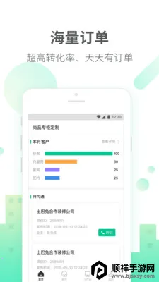 土巴兔商家app是一款超棒的商家营销软件,能为商家提供专业便捷快速的智能管理服务。它能一站式帮您管理各类客户,极大提高效率,满足您的使用需求。软件特色众多,比如海量订单,转化率超高,天天都有订单;在线接单,新单实时推送,一个不落;量房服务,可在线邀约设计师马上量房;我的钱包账单清晰,还能实时提现。其功能也十分强大,消息推送能即时送达量房消息;跟单项目助设计师随时查看项目信息高效服务客户;派单项目会将项目合理分配给合适设计师提供个性化服务;辅材管理可移动下单,无需再跑辅材市场;隐私呼叫能保护信息不外泄。操作也很简单,未创建方案和已创建方案都有明确的操作教程。有了它,您能以更低成本、更高效率实现移动端营销,提升曝光率和销售额,获得更高利润,轻松搞定装修行业生意!