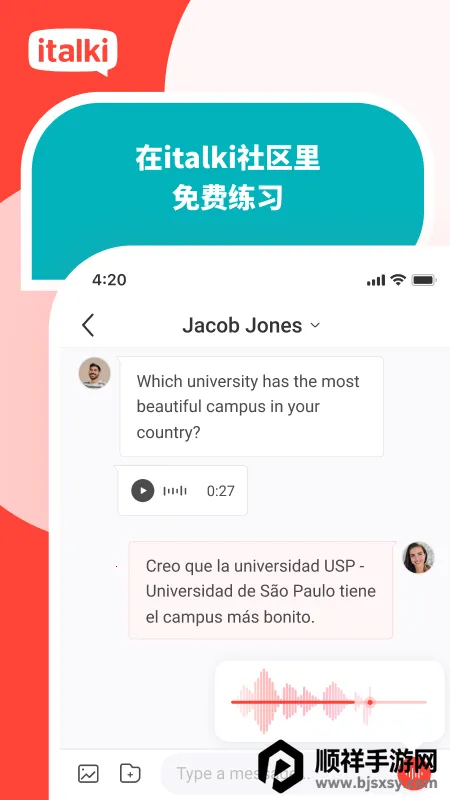 2. 零门槛italki社群:跨国语伴实时连麦,母语者即时纠错,专业教师免费点评,190国家学霸齐聚,经验互换无缝畅聊。