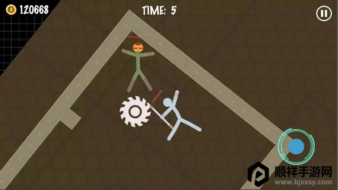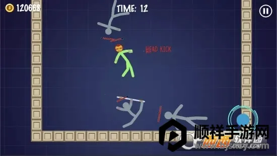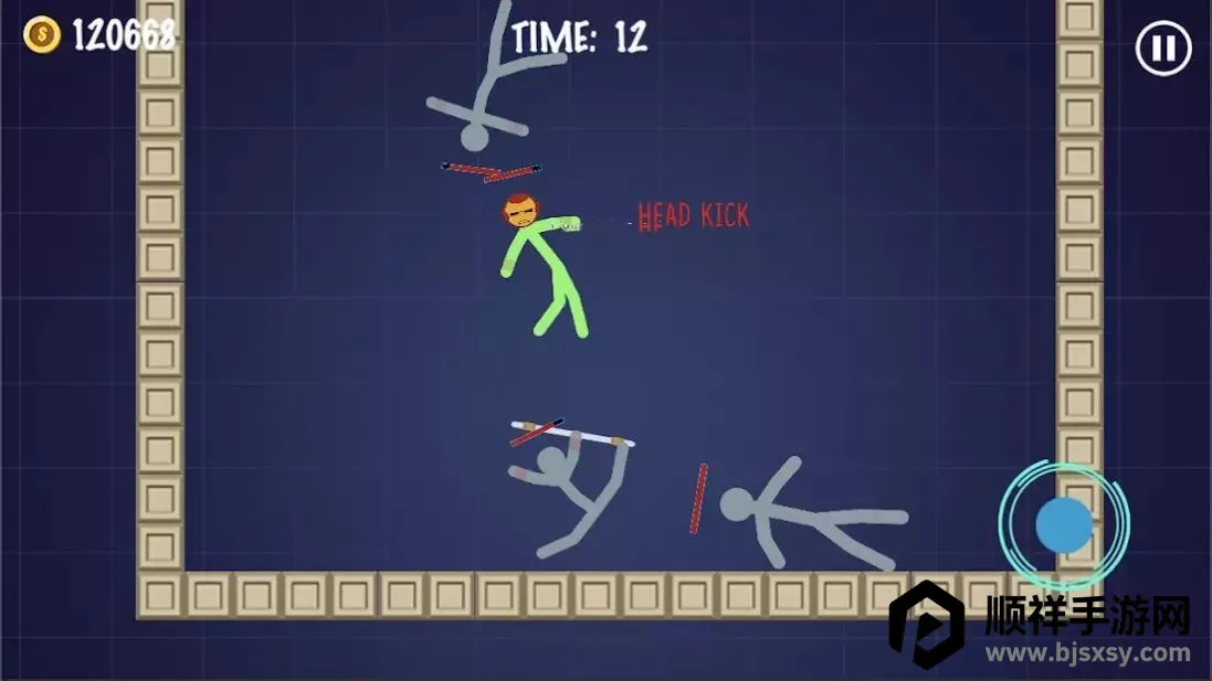 2. 操作简单,通过横版摇杆操控火柴人热血格斗。