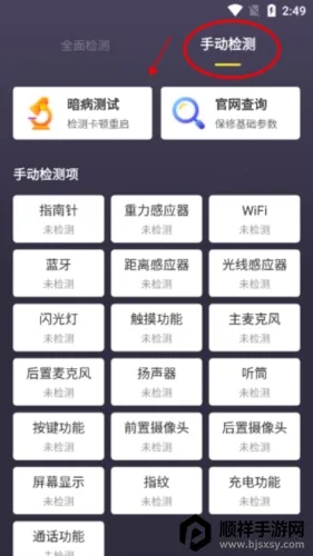 1、下载安装软件,可通过全面检测以及手动检测两种模式检查手机