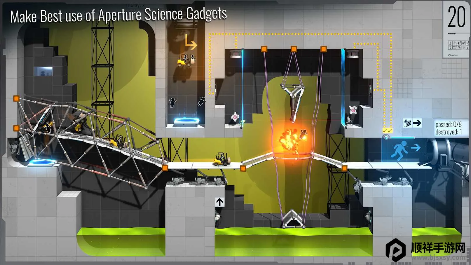 桥梁构造者:传送门安卓版将经典Portal与BridgeConstructor结合。在光圈科技测试室,利用传送门等工具建造桥梁等建筑,助班迪通过终点线,躲避危险,GLaDOS原声引导,还有GooglePlay游戏服务成就。