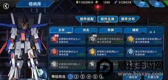 2、根据各类部件的能力,均能对机体属性各项进行一定比例的提高,诸如格斗的诱导距离、喷射槽上限、机体耐久与防御的加成等等。