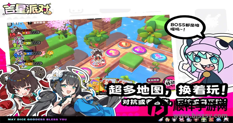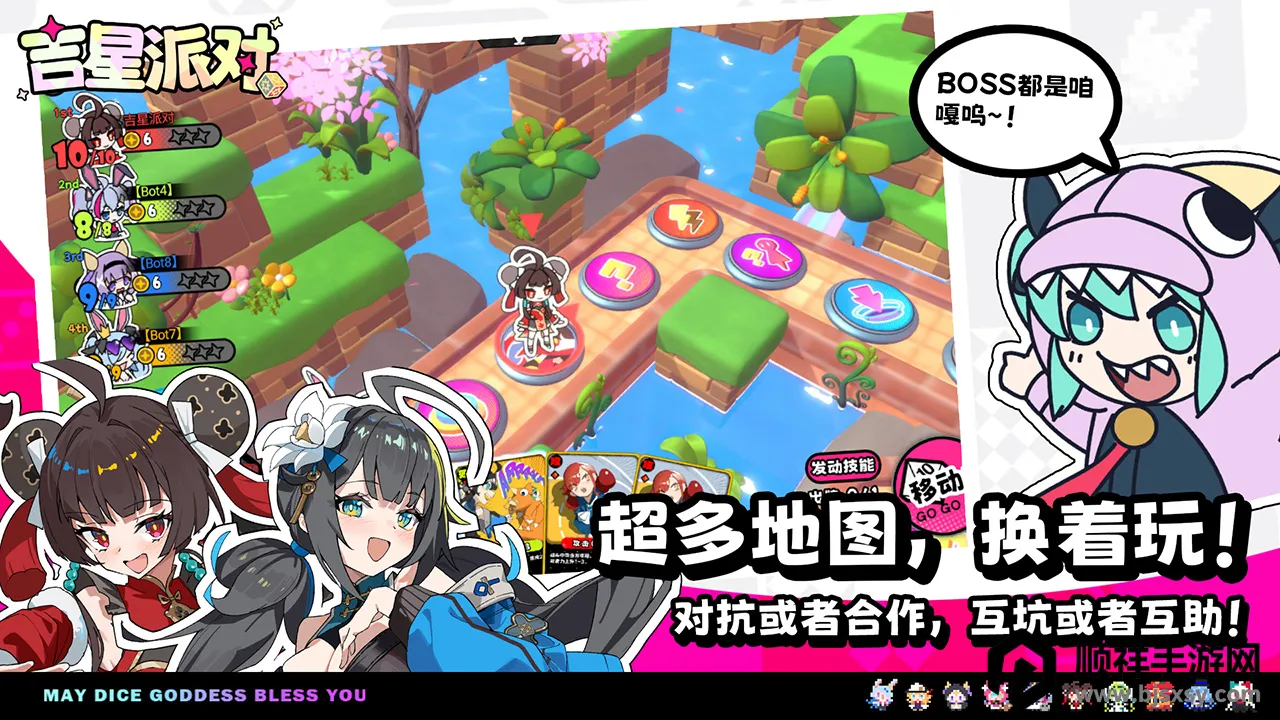 吉星派对是一款超有趣的多人联机派对游戏。最多支持4人同时玩,能让你和朋友尽情开派对。游戏里有各种特色角色,比如商业传奇帕露南,她的主动技能网络购物可远程开商店买卡牌,被动技能传奇商人让每次购买多一张战斗牌且进商店得1星币。
