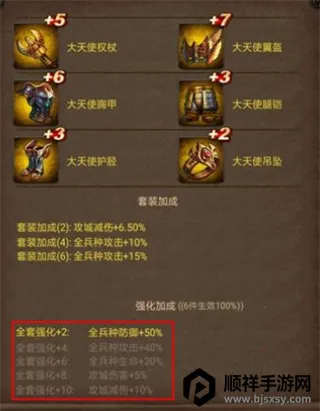 全身6件装备强化+6,则激活全套强化+6,以此类推。