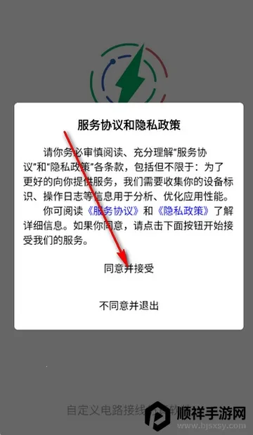 1、打开电工仿真接线助手app,点击同意隐私政策