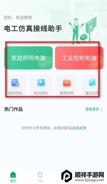 2、进入软件首页,可练习家庭照明电路等功能