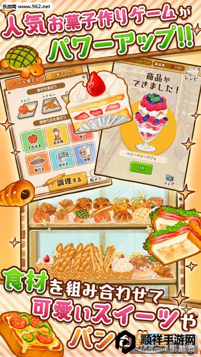 这里有丰富的玩法。你可以采购食材制作各种甜品,满足顾客需求,应对特别订单。菜谱合成系统超有趣,能研究合成新菜谱,创造独特甜点。游戏还有诸多特色,比如300多个食谱不断更新,店铺外观能按喜好随意设计,存印花卡可兑换稀有食材做顶级甜品。
