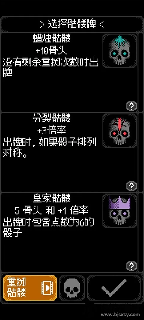 卡尔玛之骰是一款融合卡牌构筑与骰子投掷玩法的Roguelike游戏。玩家化身迷失灵魂,在阴森冥界构建卡组、投掷骰子获取分数,挑战守护者卡尔玛并逃回生者世界。游戏亮点十足,每次骰子投掷都是策略与运气的博弈,可激活骷髅卡牌强力技能;拥有数十种骷髅卡牌,能随心搭配发掘协同效应;像素画风与低沉音效营造阴森氛围;卡牌多重联动可触发强力组合技能。在这里,每一次尝试都充满未知与惊喜,能让你充分体验到策略搭配与随机应变带来的乐趣,绝对值得一玩。