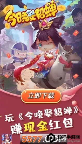 今晚娶貂蝉红包游戏最新版是三国题材挂机放置类休闲手游。战斗竞技快速,玩法多样,边玩边赚钱,新人登陆简单玩可提现0.3元,看视频广告、推广好友等均可获红包奖励,永久3毛提现,适合打发时间。