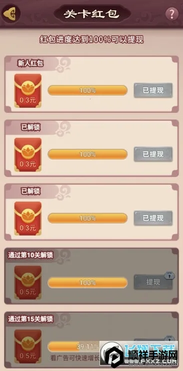 3、提现便捷:提现靠进度条,满足一定数额就能提现,3毛钱秒到微信。升级、签到、在线奖励等功能可提升进度条,助力快速提现。