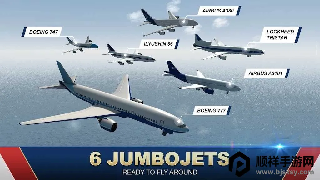 2、丰富飞机选择:收录多款经典喷气式飞机,像波音747、空客A380等,每架飞机都有独特驾驶操作与仪表盘,满足你对不同机型的驾驶渴望。