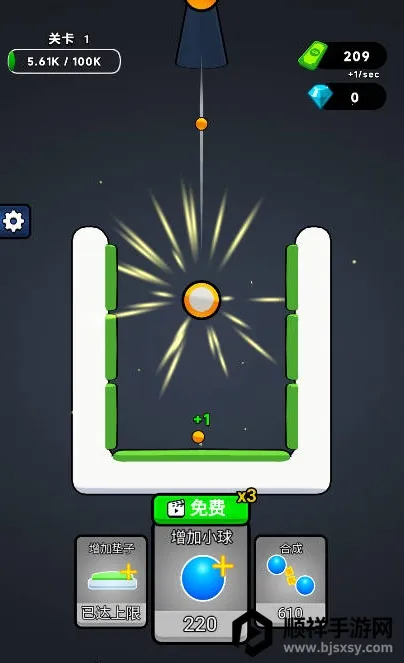 无敌合成系统开局一根木棍这类游戏非常有趣。它是休闲益智型的,玩法轻松。一开始玩家只有一个小球,小球在区域内弹跳能产生金币。玩家要运用策略,不断增加小球数量和垫子数量,提升金币产生效率。可以点击两颗相同颜色和级别的小球进行合成,合成的小球级别越高,收益越高。通过免广告模式能获得更多小球和垫子。游戏特色丰富,有金币道具可在一定时间内增加小球碰撞产生的金币数量,自动合成道具能自动合成符合条件的小球,还有清除障碍道具让合成更顺畅。操作简单,点击添加球按钮就能合成。亮点在于卡通风格画面,背景音乐轻松,小球造型可爱,能带来放松感。闯关时需策略规划小球堆叠和合成时机,不定期出现的道具可免费使用,合理利用能提升收益、快速通关,给玩家带来畅快自由的体验和成就感。