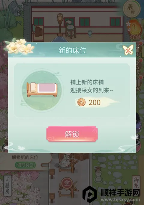 玩家点击床铺区域加号就可以新建一个床铺,迎接采女的到来。
