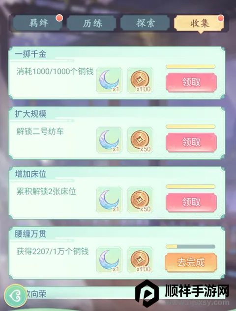 通过解锁建筑、获取即消耗铜钱等即可解锁成就。