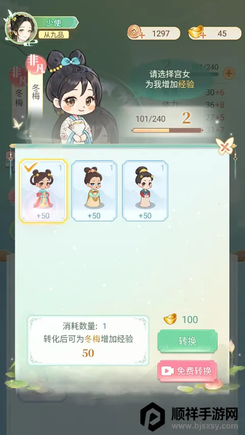 2、宫女还可以进行升级,消耗低级宫女进行转换升级。