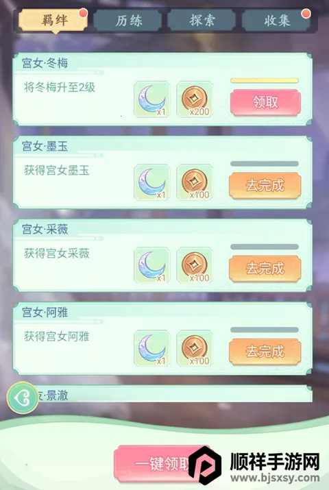 玩家通过选拔、升级宫女、解锁故事羁绊等可以解锁羁绊成就,领取丰富成就奖励。